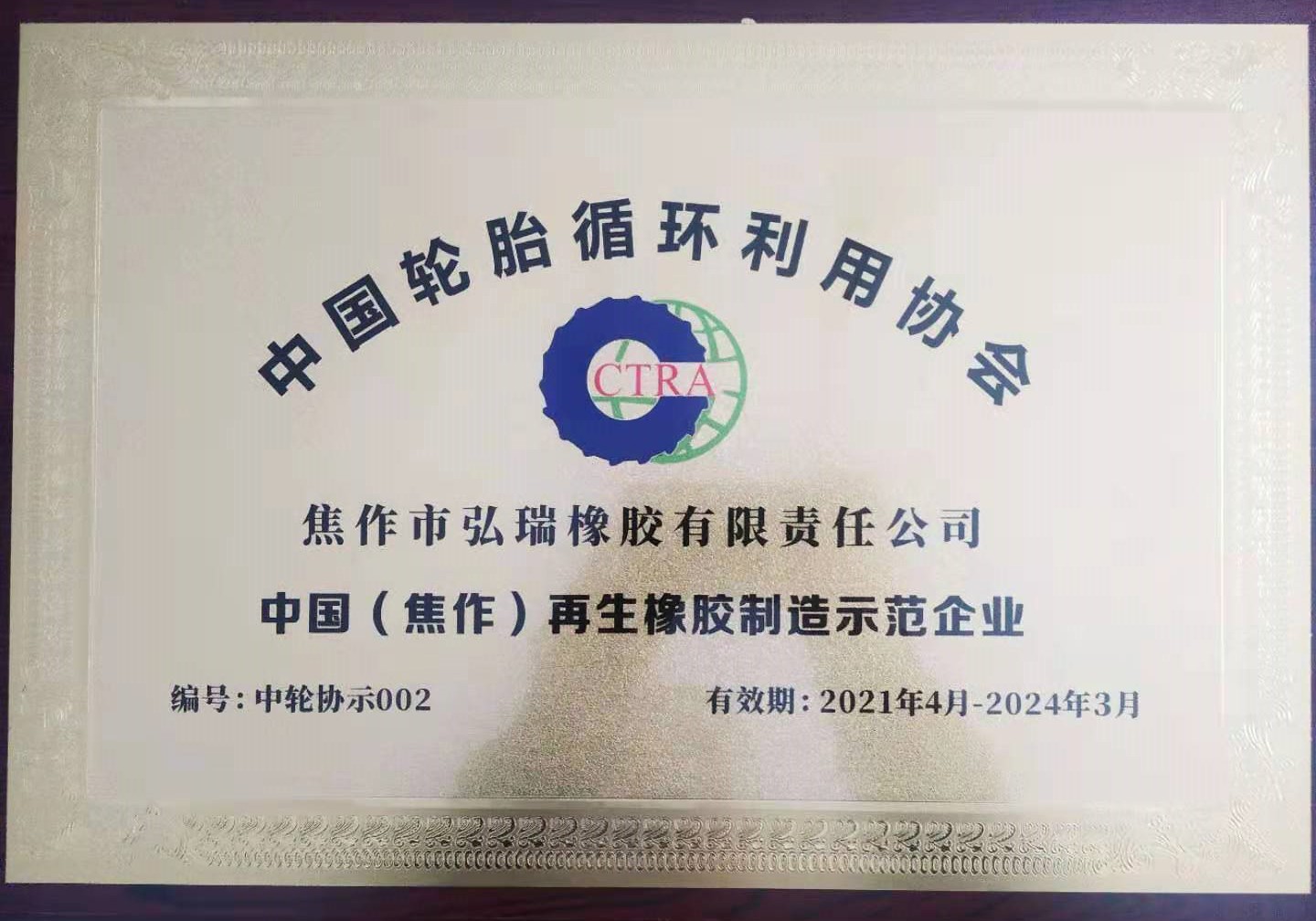 公司榮獲中國輪胎循環(huán)利用協(xié)會多項榮譽稱號